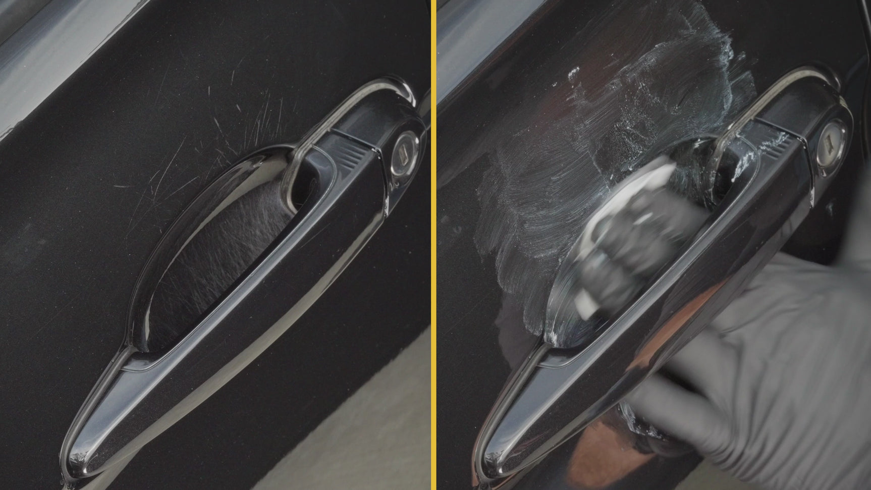 Unikt konstruerade precisionsslipmedel kombineras med wipematerialet för att ta bort vattenfläckar, fina repor från klarlacken, oxidation och matta strålkastare med professionellt resultat.