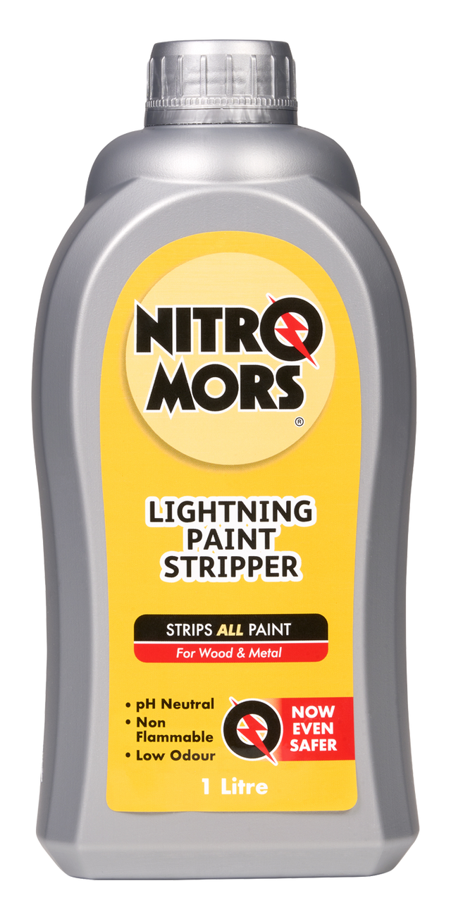 Nitromors Lightning Paint Stripper är vattenbaserad och speciellt framtagen för att vara en säkrare metod för borttagning av färg. Formuleringen kan användas på en mängd olika typer av beläggningar, såsom trä- och metallfärger samt olika typer av lack och 2k färger. Nitromors gör färgborttagning snabb, effektiv och enkel. Den tjocka gelformulan fäster även på vertikala ytor och fungerar därför också på dörrar och radiatorer utan att droppa.