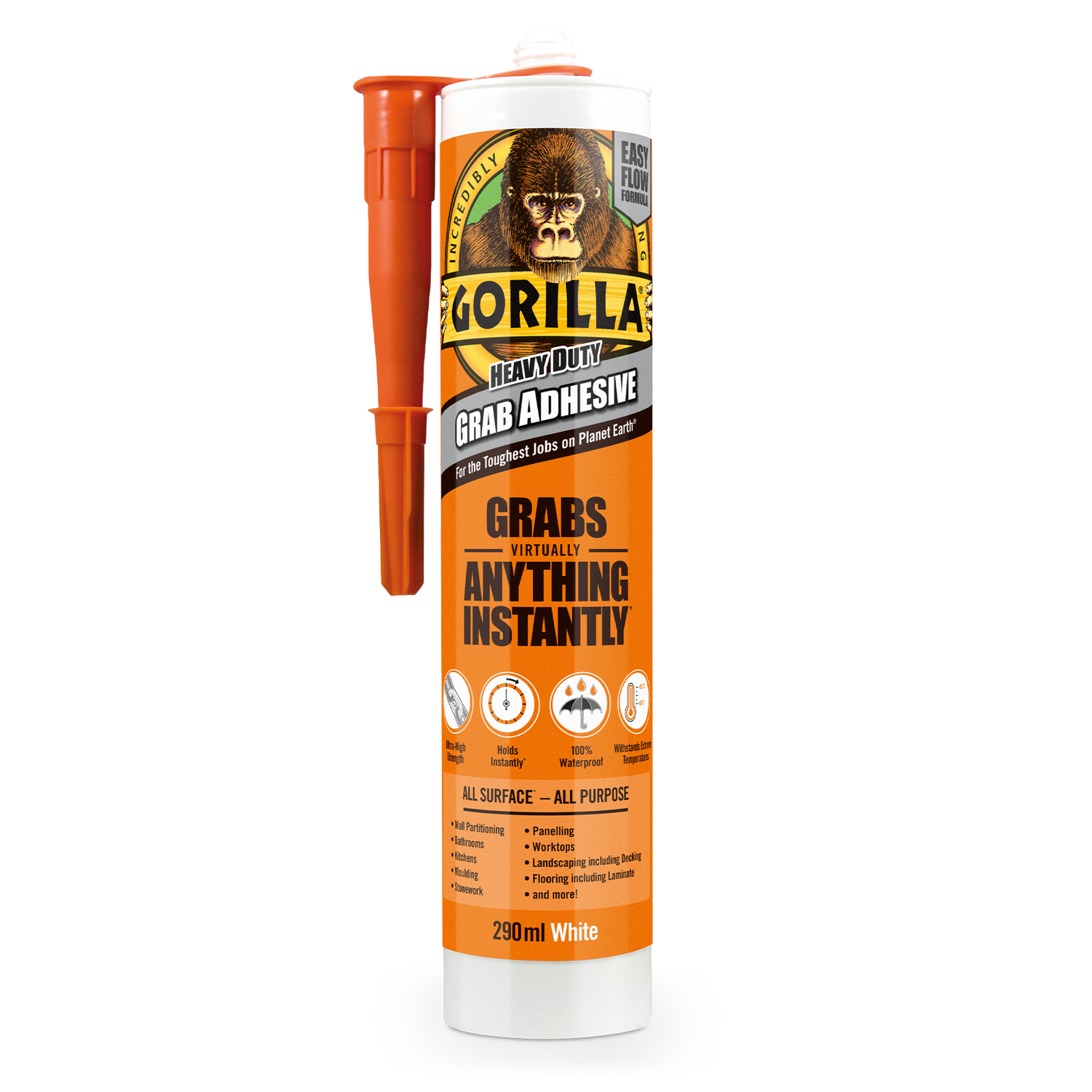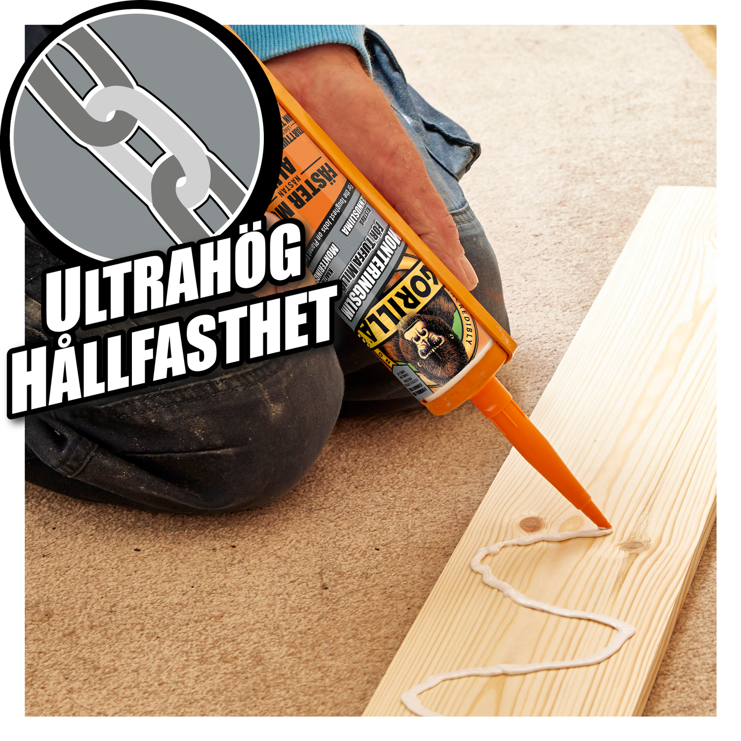 Gorilla monteringslim är så mångsidigt att det greppar i stort sett allt. Kan användas till Byggskivor, Badrumsarbeten, Kök, Listarbete, Stenarbeten, Paneler, Golvläggning, Trädäck med mera