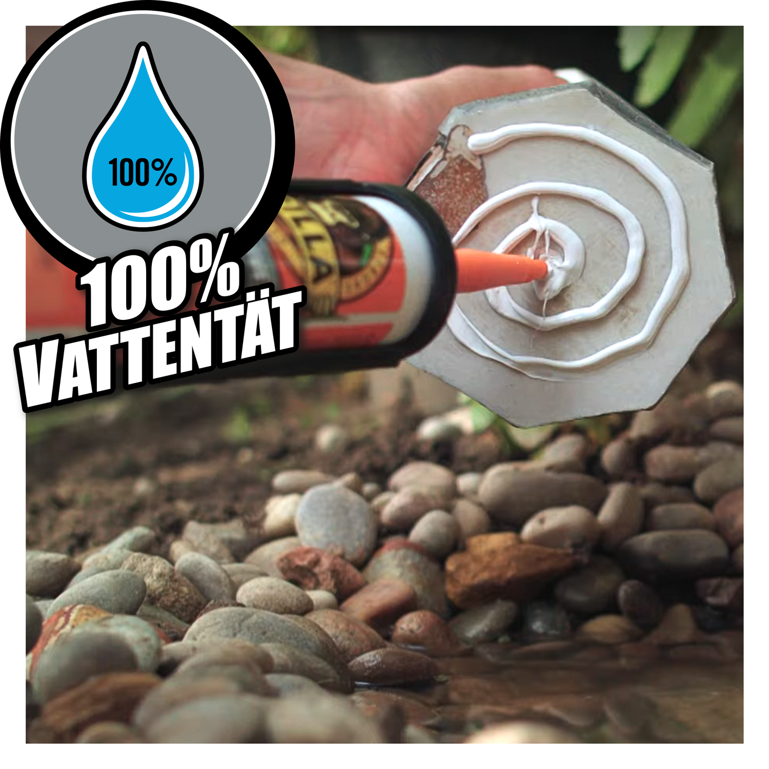 Använd inomhus och utomhus, till och med under vatten – fäster mot både våta och torra ytor. Det ger ett extra starkt fäste som varar. Övermålningsbar efter genomhärdning.