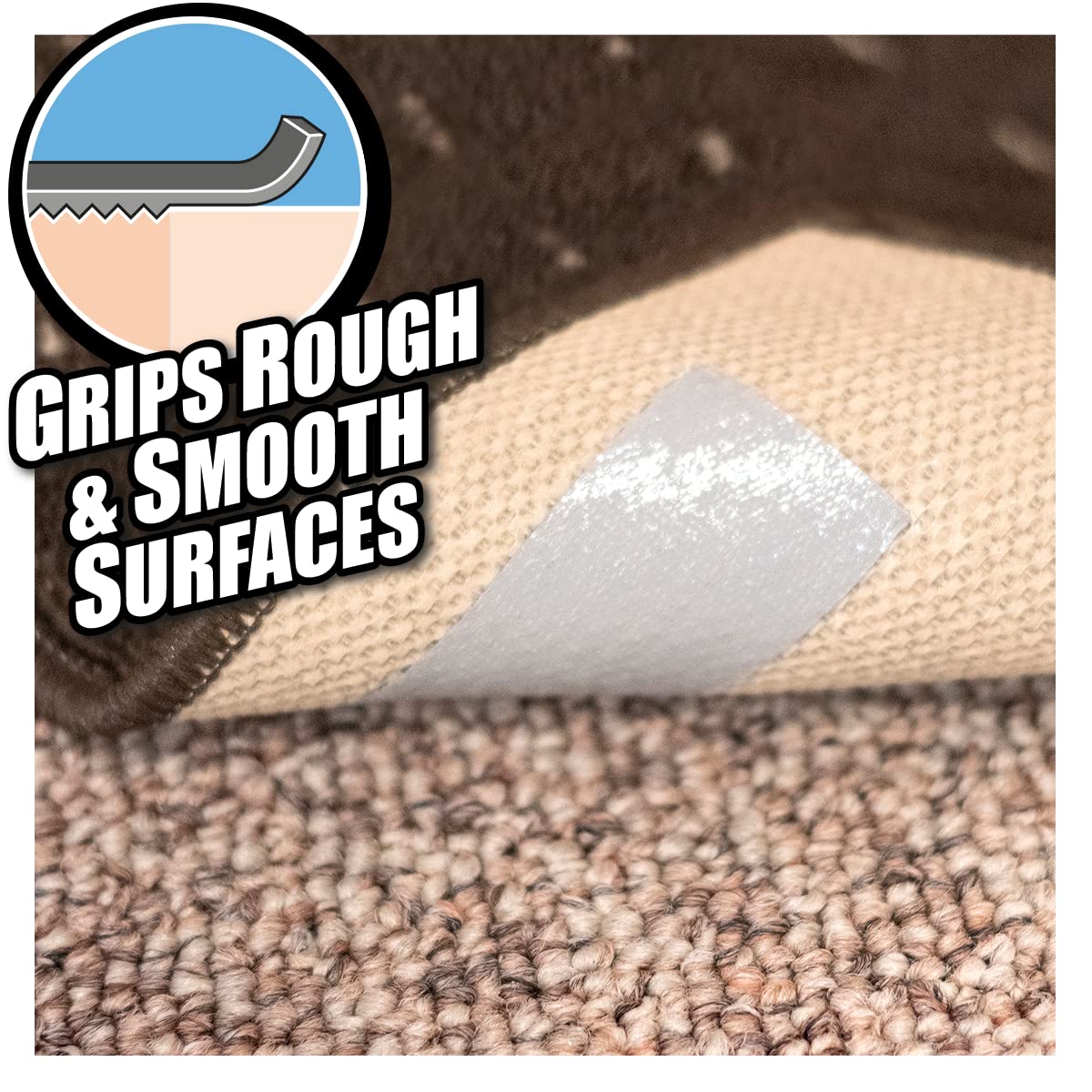 Gorilla dubbelsidig tejp fäster på släta och grova ytor inklusive mattor, mattor, golv, trä, sten, tegel, metall, vinyl, plast, papper och mycket mer.