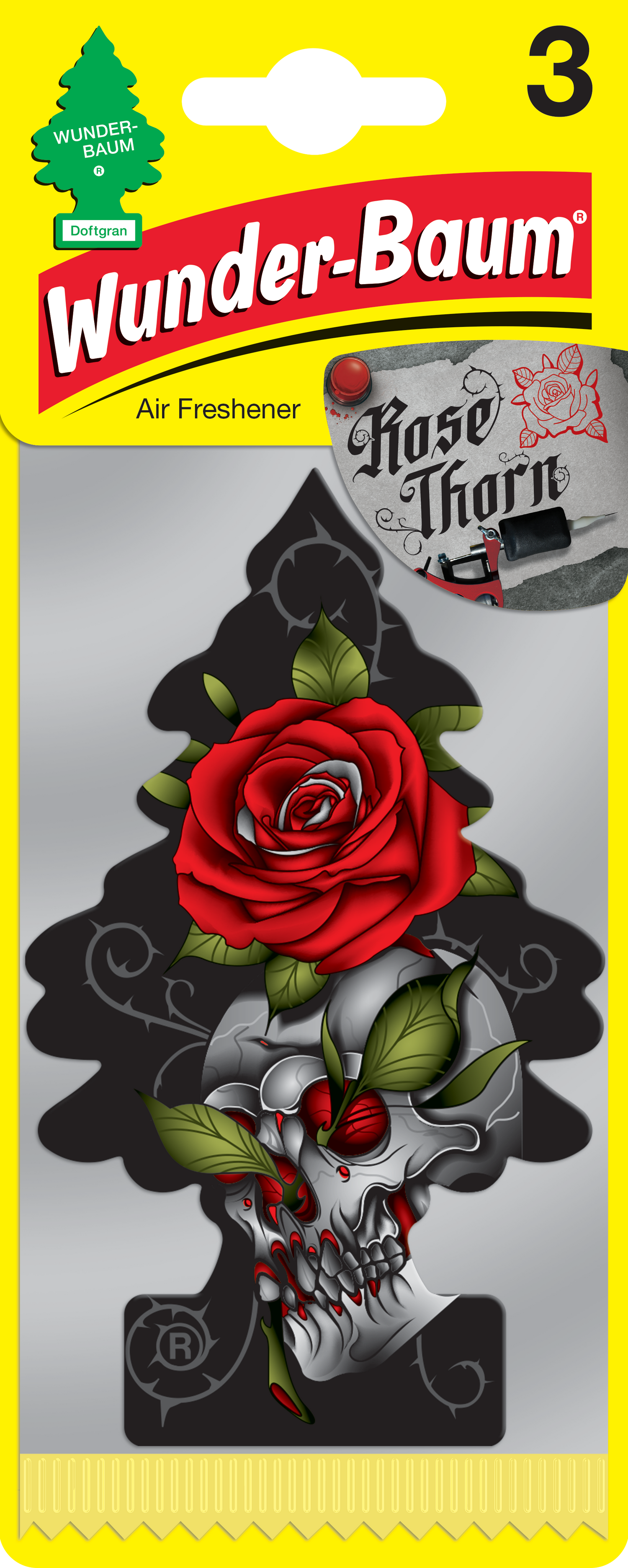 Rose Thorn utgår från den fylliga doften av en röd ros, omsluten av mörk jord och ljusgröna blad, vilket adderar ytterligare en dimension till den välbekanta blomman.
