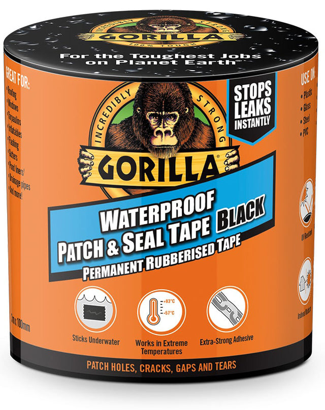 Gorilla Patch & Seal Tape är en UV-resistent permanent lagningstejp som är lufttät och 100% vattentät.